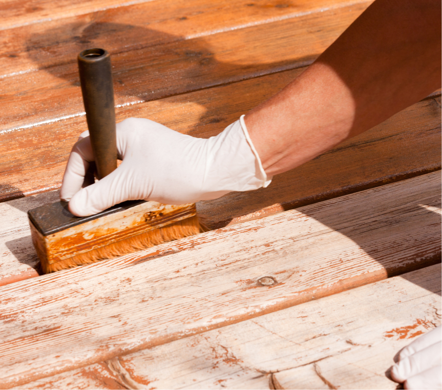 - Stain and Seal: We apply the chosen stain and sealer evenly across your deck using high-quality products and expert techniques. Our detailed application process ensures complete coverage and a smooth, professional finish.