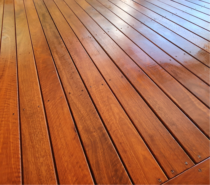 - Semi-Transparent Stain: This will enhance your deck's protection against water and sun damage while showcasing wood grain. It typically lasts three to four years.